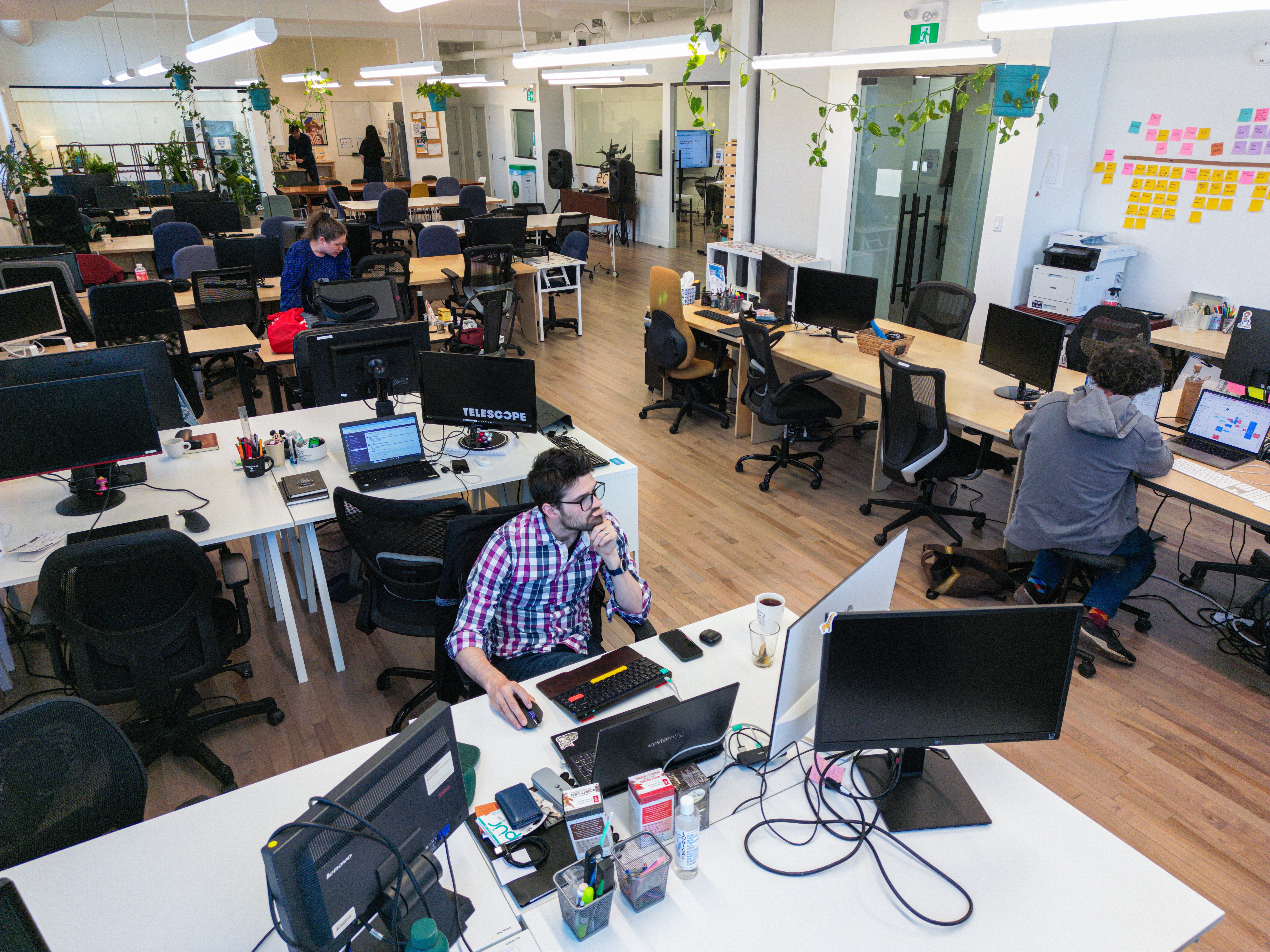 Ecto dispose d’un grand espace ouvert avec bureaux, cabines téléphoniques, cuisine équipée, douche… Bref, tout ce qu’il faut !